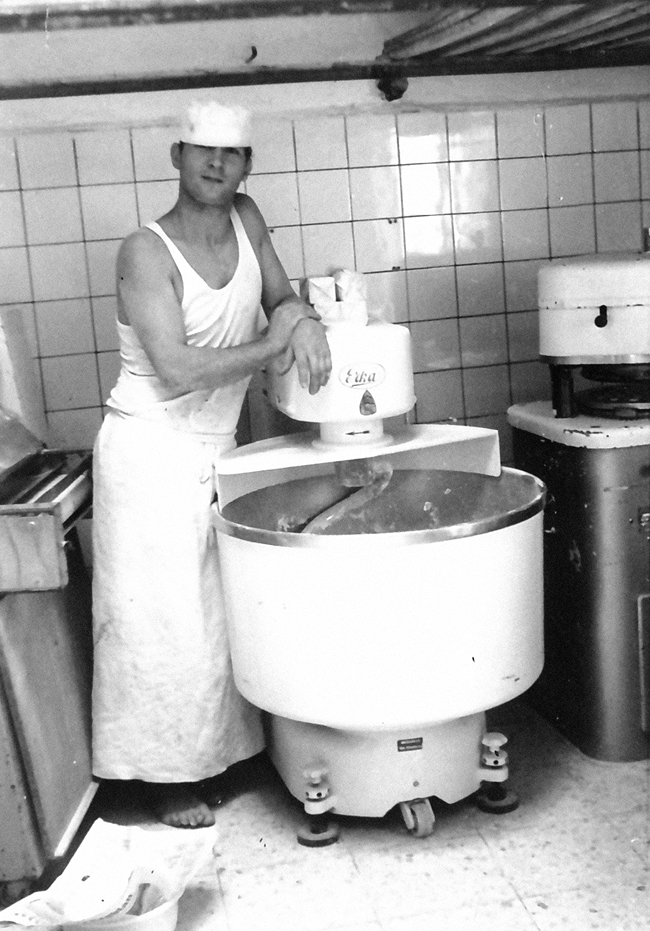 Backstube 1970, Josef jun. Lehrbach während seiner Ausbildung